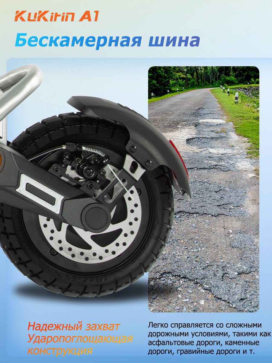 Электросамокат Kukirin A1 оснащен надежным складным механизмом, который позволяет в считанные секунды уменьшить габариты устройства для компактного хранения. В сложенном состоянии размеры составляют 1154×580×535 мм, что позволяет легко разместить самокат в багажнике автомобиля или в прихожей городской квартиры. Вес модели равен 25.5 кг, что обеспечивает устойчивость при движении и приемлемую массу для переноски на короткие расстояния.