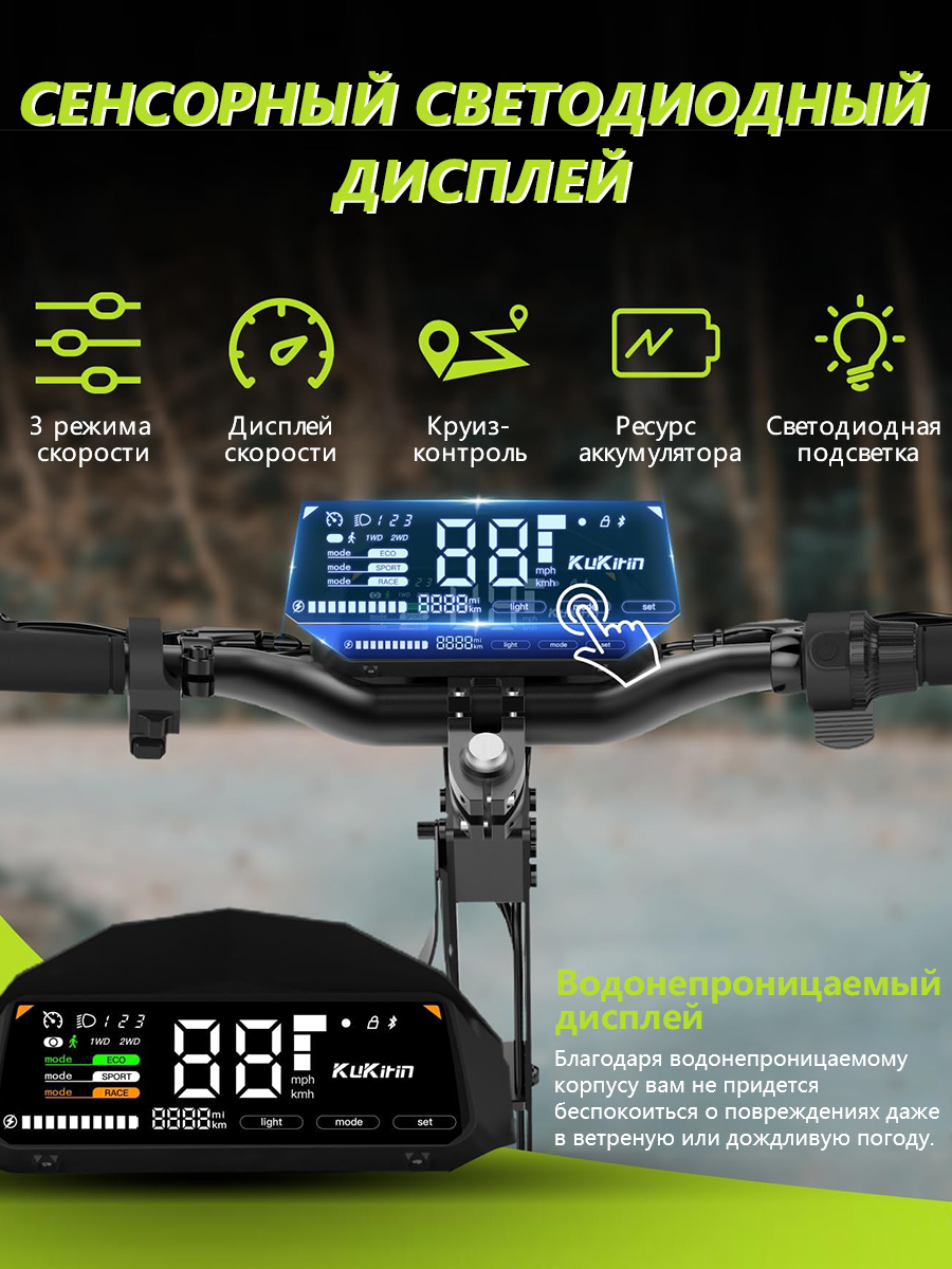 Колеса с качественными пневматическими шинами обеспечивают надежное сцепление с дорогой и комфортное преодоление неровностей на высокой скорости. Прочная конструкция и мощный двигатель делают Kukirin G4 идеальным выбором для тех, кто ценит скорость и надежность. Самокат одинаково хорошо подходит как для ежедневных городских поездок, так и для загородных путешествий.