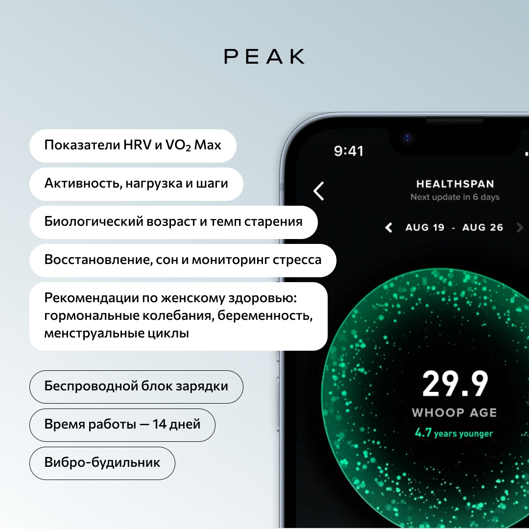 Whoop 5.0 также предоставляет уникальные функции для мониторинга женских гормонов и оценки физиологического возраста через метрику «Healthspan». Это позволяет вам не только отслеживать физическую активность, но и понимать, как гормональные изменения влияют на ваше самочувствие и производительность.